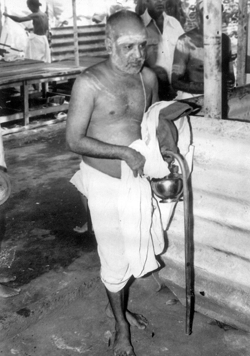 Due to such a pure life of penance and the blessings of great souls, Govinda Damodara Swamigal attained many spiritual powers (Siddhis) and shone as a Mahatma capable of both nigrahaa and anugraha. The words he spoke came true like (eashwara vaaku) the words of God. However, hiding those powers so as not to attract crowd or money, he prayed to Maha Periyava every day: “Protect me from fame, profit, and worship, and grant me devotion to your feet.” That Mahatma, who shone as a liberated soul (Jivanmukta) having attained wisdom and dispassion through supreme devotion, finally accepted the order of Sannyasa. He offered solace in the name of God to everyone who came to him, without discrimination between the learned, the unlettered, the poor, or the rich.